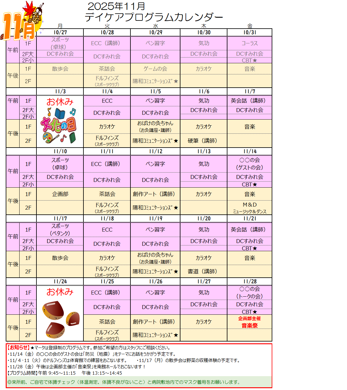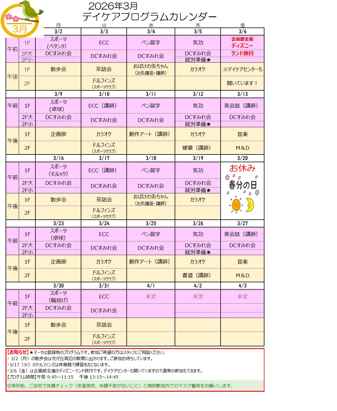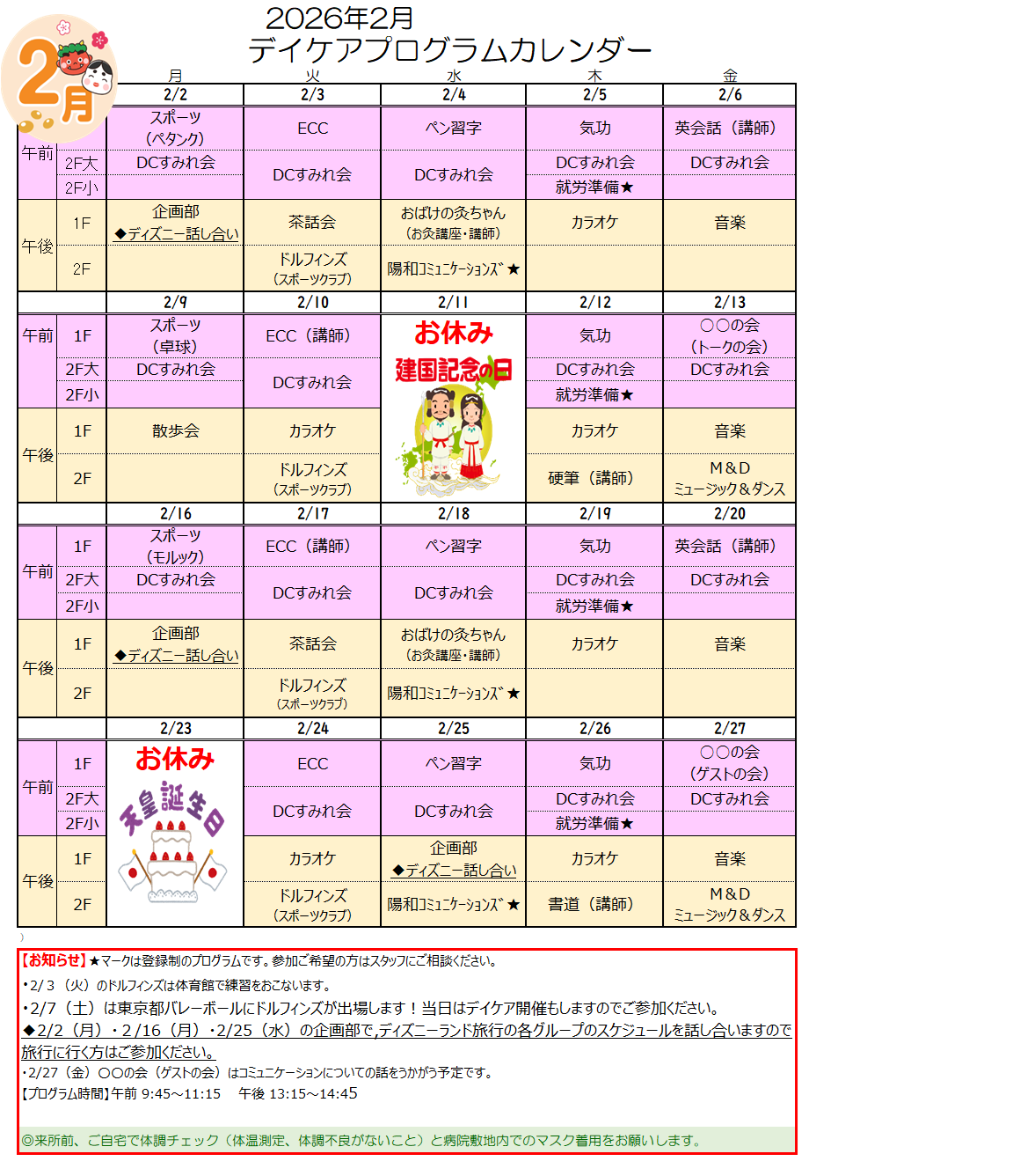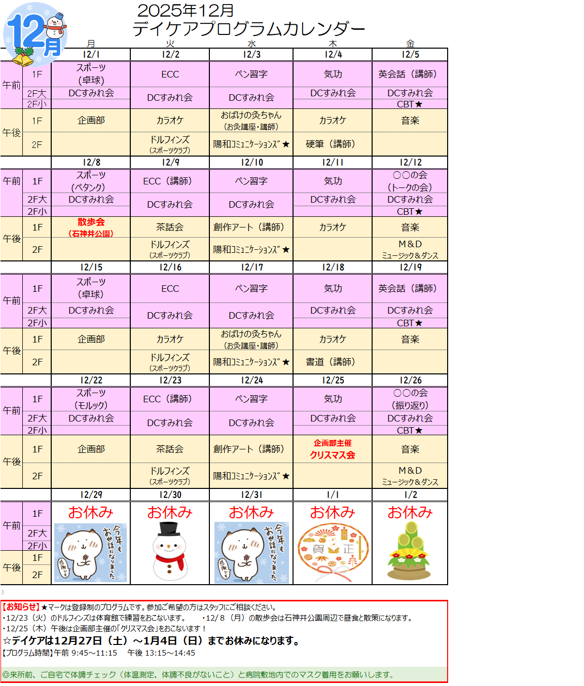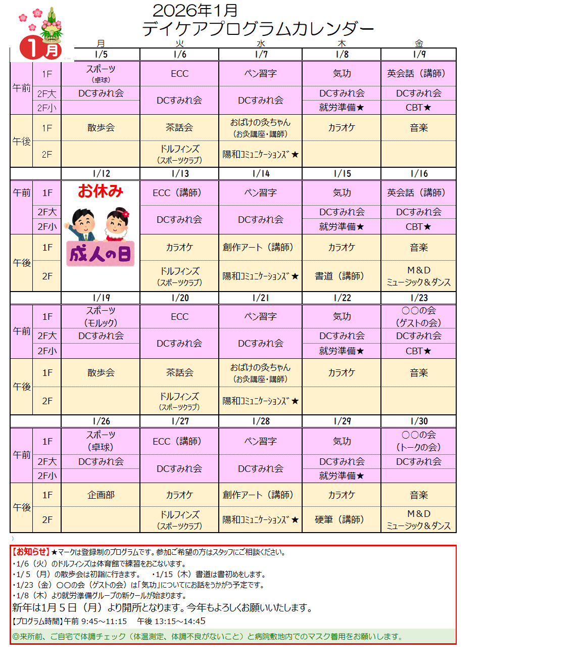 デイケアでは、下記の新型コロナウィルス感染防止対策を徹底しています。